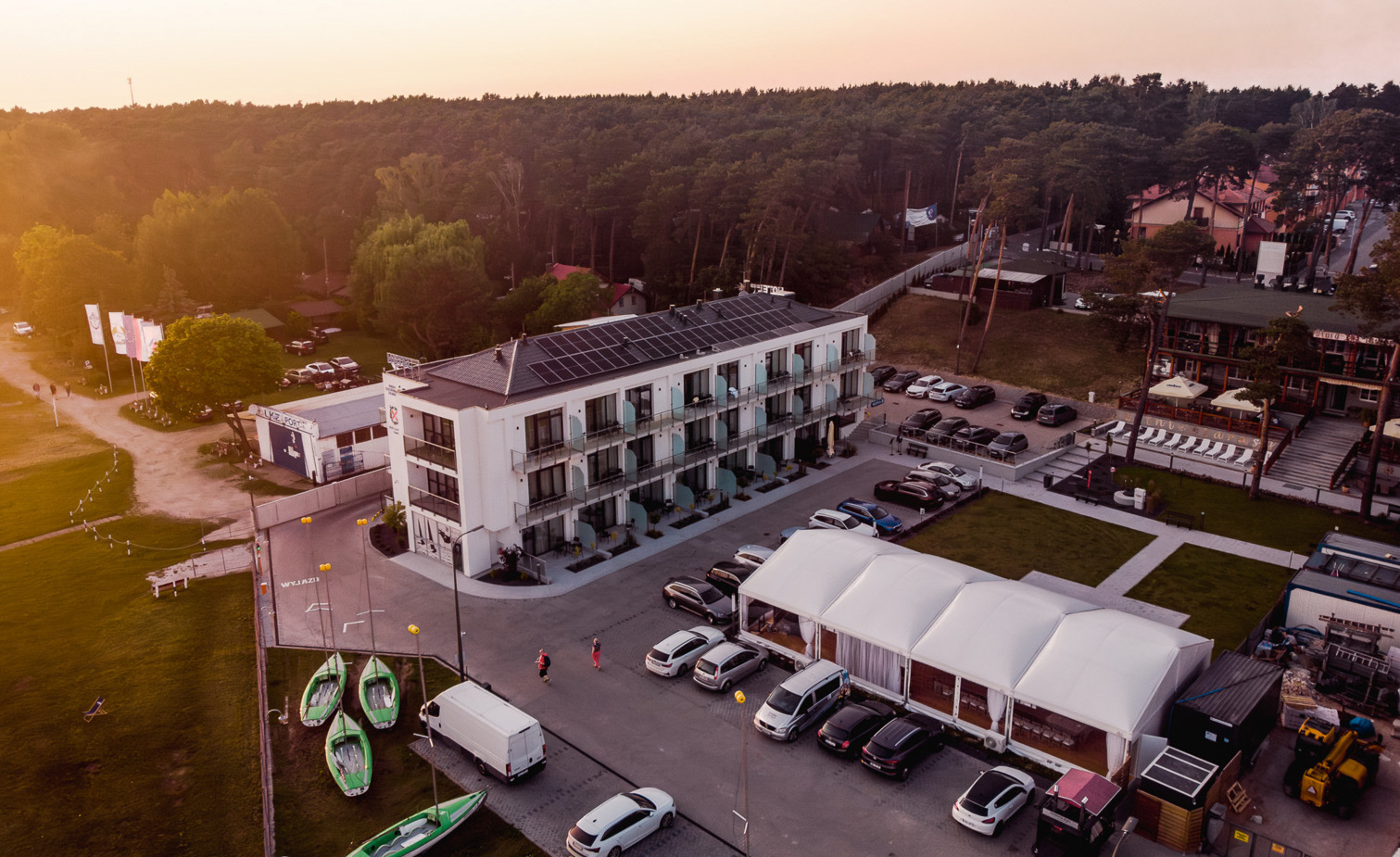 - Namiot eventowy (200 m²) – z pełnym zapleczem multimedialnym, sceną i możliwością indywidualnej aranżacji. Pomieści nawet 140 osób.